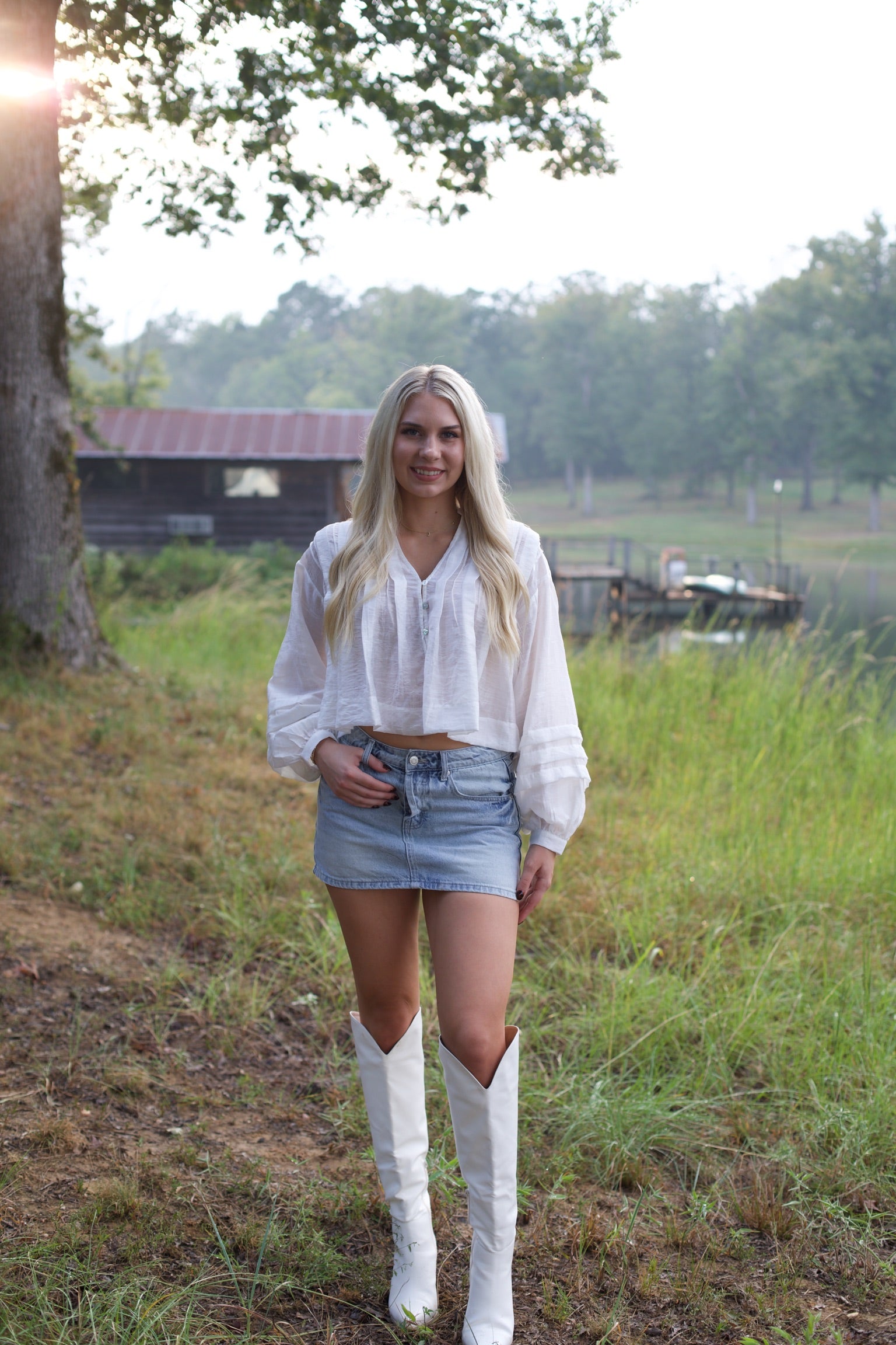 - White pleated button-up top